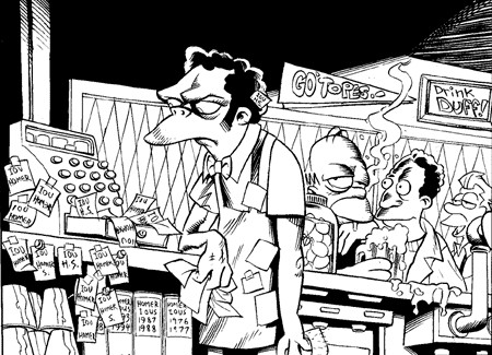 Bart Simpson's Treehouse of Horror #9 is out, by the way... it has three stories and two of them feature my art, pretty cool huh? heres a panel ( thats ted naifeh inking me on the moe " cask of amontilla-doh!" story)