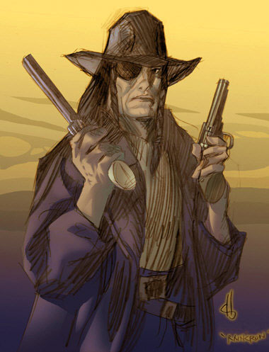 Also, here is a mysterious stranger. Could he be a new Nocturnal? Meet Raincrow and many other new faces in "NOCTURNALS: A MIDNIGHT COMPANION" coming in March from Green Ronin . The art is me colored by ted naifeh, by the way.