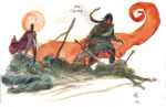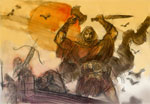 Below are some sketches for my next big project Ill be starting in a month- 'L'Ultima Battaglia' ( the last battle) for disney global - who are headquartered in Milan. the 64 page story will appear in several languages, including english ( a US version is planned as well) though this branch of Disney handles children's publishing and comics for the rest of the world, which means this book will be seen by potentially more readers than anything ive ever done. The Last Battle is written by Tito Faraci, italian comics scribe, who Im told is quite popular over there.